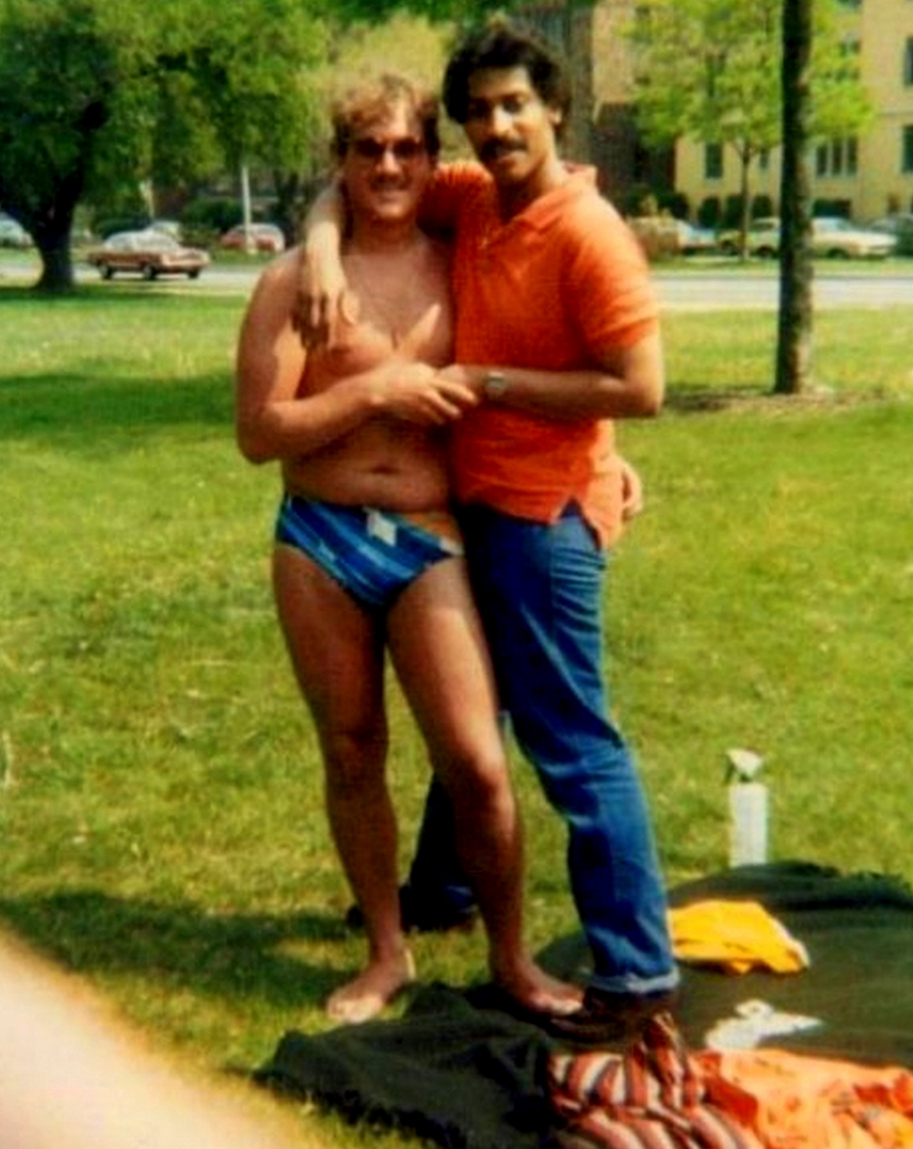 Photo: Two men on the “Green Beach” in Palmer Park in the summer of 1980. Courtesy of Dr. Tim Retzloff