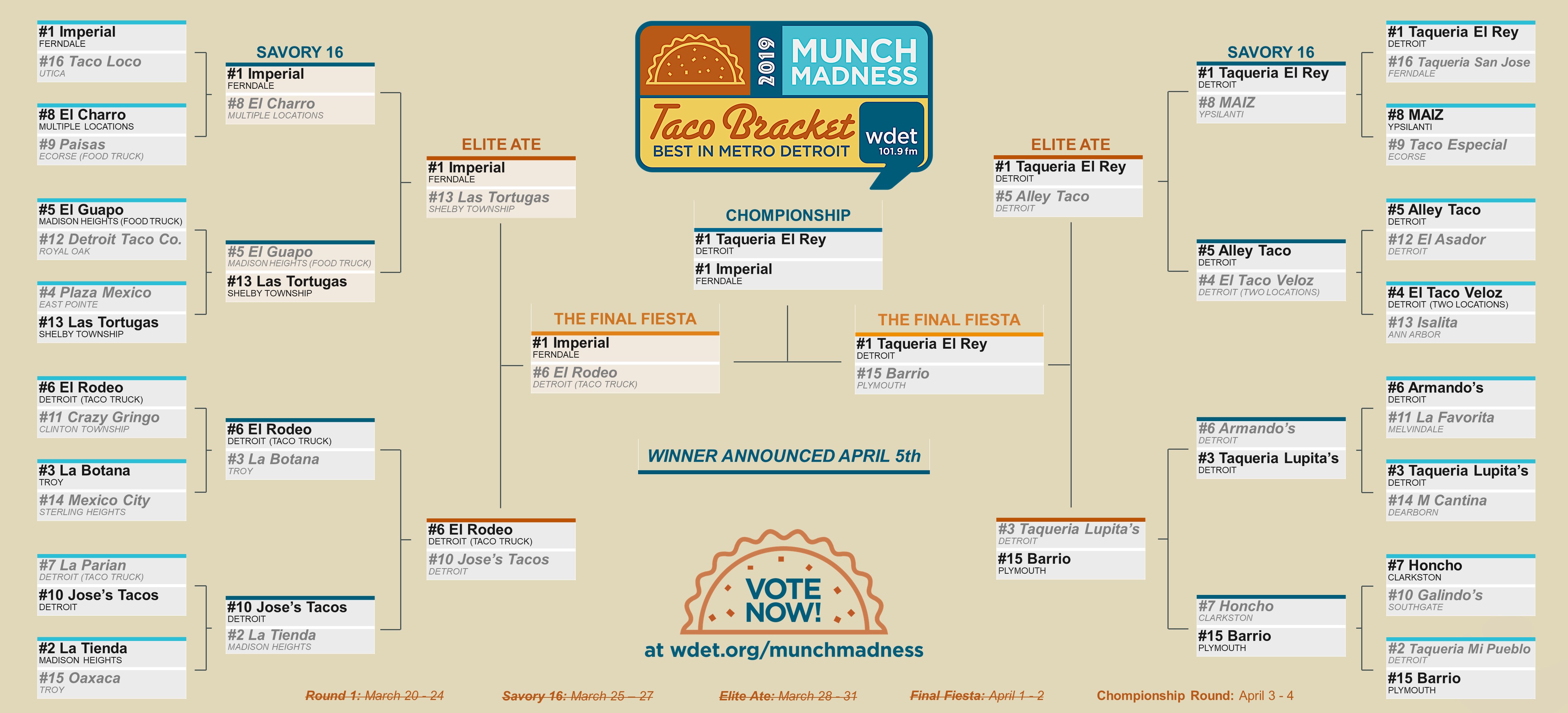 The 2019 WDET Munch Madness: Taco Showdown bracket has come to this.