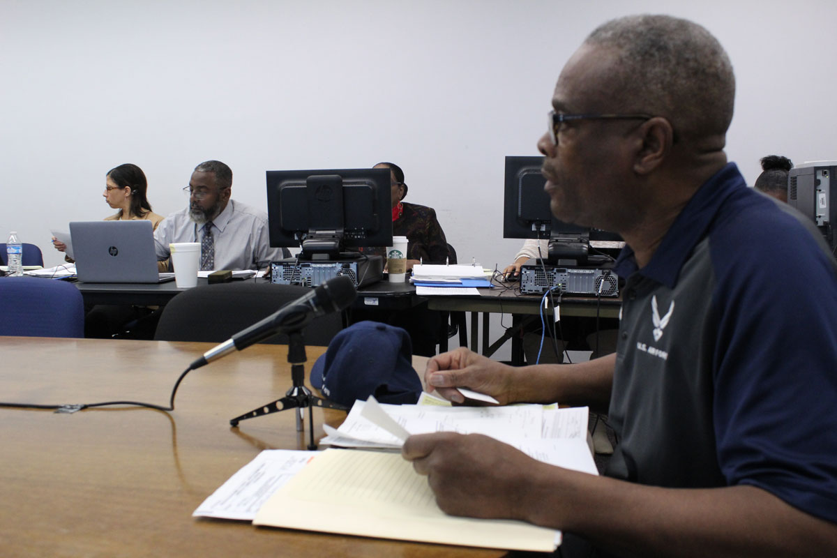 The appeal hearings take place on the 8th floor of the Coleman A. Young Municipal Center in a windowless room. There’s a long boardroom table that seats members of the Board of Review. A white board has “WELCOME B-O-R” written on it in red marker, all caps.